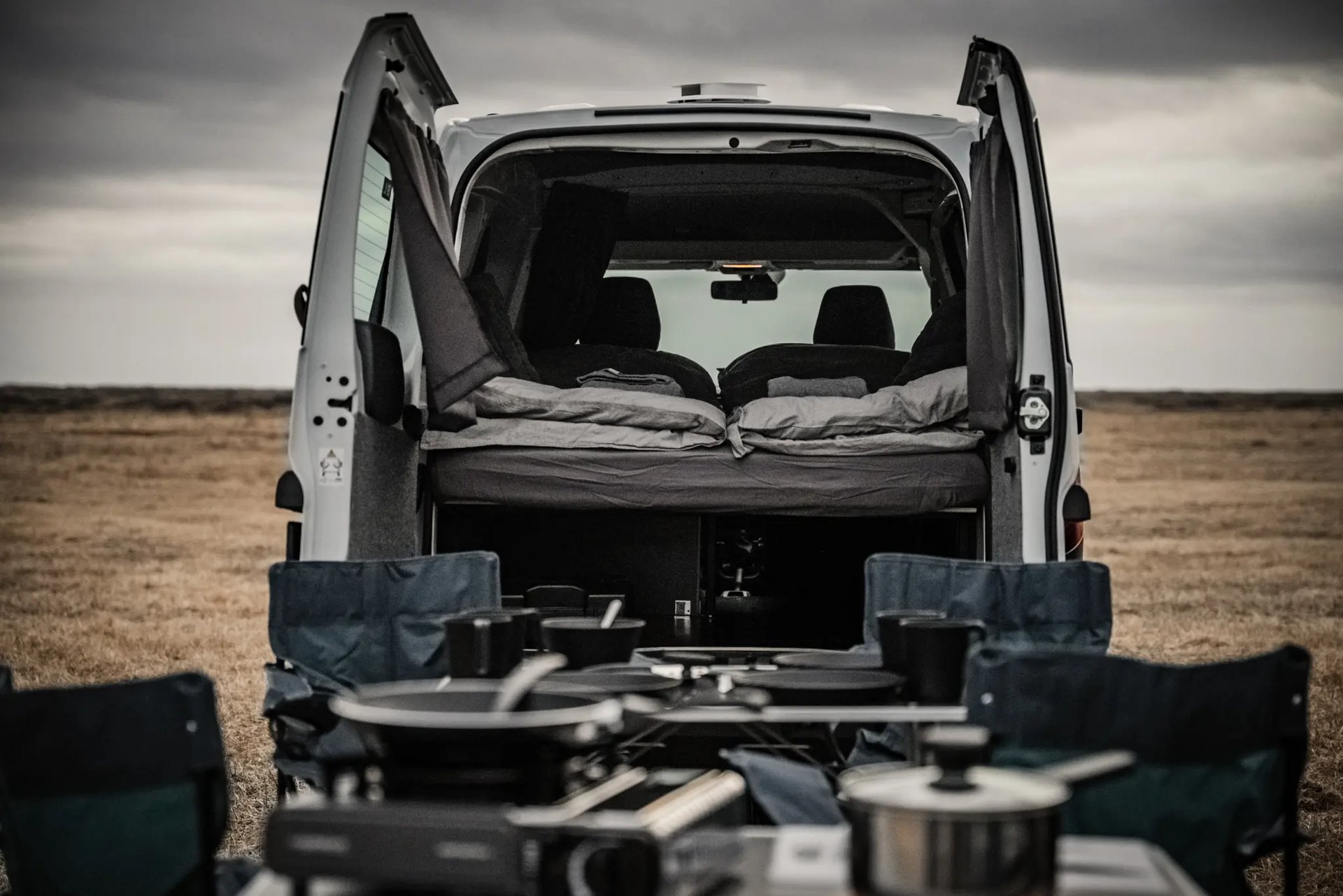 The Compact camper sleeps and seats two people and is the perfect option for a couple or two friends who are traveling on a budget. The new Renault Kangoo Express model makes driving so easy, and it is almost like you are traveling in a small car. The compact camper is 2024 - 2025 model with low mileage, making your trip stress free from any engine failure and problems during your vacation. This model is a budget version, so it has no heating, external lights, or charging ports in the back, but with our power inverter, you can charge all your belongings while the camper is turned on. Make sure to bring some extra layers for the possible cold nights. The camper has a large storage area for 2-3 large bags.