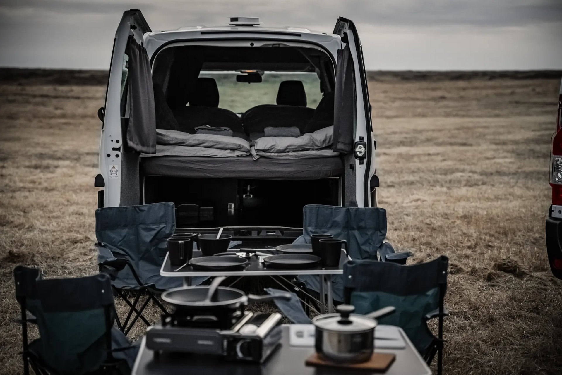 The Compact+ camper is our coziest camper. We have received huge compliments from guests who have slept extremely well with our comfy mattress topped up with our duvet sleeping kit and the built in warm Wesbasto heating system. The compact camper is 2024 - 2025 model with low mileage, making your trip stress free from any engine failure and problems during your vacation. It sleeps and seats two people and is the perfect option for a couple or two friends who are looking for a cozy adventure. The new Renault Kangoo Express model makes driving so easy, and it is almost like you are traveling in a small car. This model also has a strong electric system with three USB-C ports and one USB port (two more USB outlets in the front) that can power up phones and tablets without having to plug it in overnight.